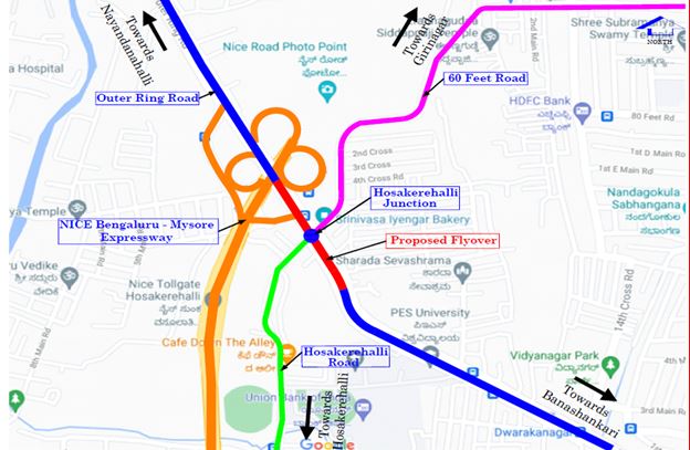 ಹೊಸಕೆರೆ ಹಳ್ಳಿ ಜಂಕ್ಷನ್ ಮೇಲ್ಸೇತುವೆ ನಿರ್ಮಾಣ ಸ್ಥಳದ ನಕ್ಷೆ