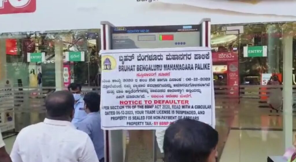 2019-20ರವರೆಗಿನ ತೆರಿಗೆ ಬಾಕಿಯಿದ್ದ ಹಿನ್ನೆಲೆಯಲ್ಲಿ ಬೀಗ ಹಾಕಲಾಗಿದೆ. 2020ರ ಆಗಸ್ಟ್ನಲ್ಲೇ ಬಿಬಿಎಂಪಿಗೆ 10 ಕೋಟಿ ರೂ. ಮೊತ್ತದ ಚೆಕ್ ನೀಡಿತ್ತು. ಆದರೆ ಆ ಚೆಕ್ ಬೌನ್ಸ್ ಆಗಿತ್ತು. ಮತ್ತೆ ಮತ್ತೆ ನೋಟಿಸ್ ನೀಡಿದ್ದರು ಕೂಡ ಮಾಲ್ನ ಆಡಳಿತ ಮಂಡಳಿ ತೆರಿಗೆ ಪಾವತಿಸಲು ಕ್ರಮ ಕೈಗೊಂಡಿರಲಿಲ್ಲ.