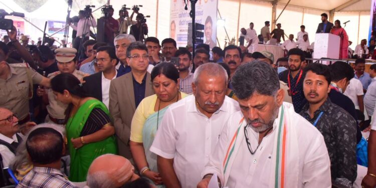 ಬೆಂಗಳೂರು, ಜ.3 www.bengaluruwire.com : ಕೆ.ಆರ್ ಪುರದ ಐಟಿಐ ಕ್ರೀಡಾಂಗಣದಲ್ಲಿ ಬುಧವಾರ ನಡೆದ “ಬಾಗಿಲಿಗೆ ಬಂತು ಸರ್ಕಾರ, ಸೇವೆಗೆ ಇರಲಿ ಸಹಕಾರ” ಕಾರ್ಯಕ್ರಮಕ್ಕೆ ಉಪ ಮುಖ್ಯಮಂತ್ರಿ ಹಾಗೂ ಬೆಂಗಳೂರು ನಗರಾಭಿವೃದ್ಧಿ ಸಚಿವರಾದ ಡಿ.ಕೆ ಶಿವಕುಮಾರ್ ರವರು ಚಾಲನೆ ನೀಡಿದರು.