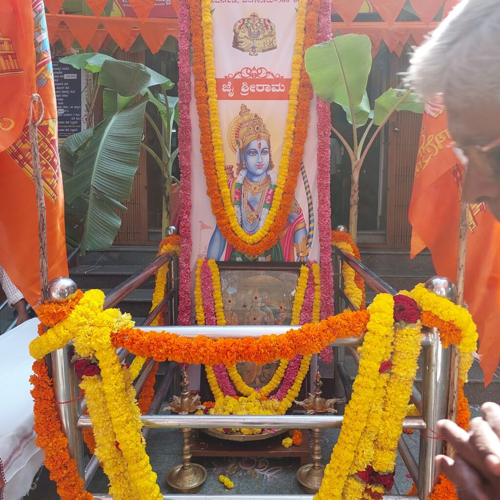 ರಾಜಧಾನಿ ಬೆಂಗಳೂರಿನಲ್ಲಿ ರಸ್ತೆ, ರಸ್ತೆ, ಬೀದಿ ಬೀದಿಗಳಲ್ಲಿ ಕೇಸರಿ ಬಾವುಟ, ಭಗವಾಧ್ವಜ ಎಲ್ಲೆಡೆ ಕಂಡುಬಂದಿತ್ತು. ರಾಮಭಕ್ತರು ಶ್ರೀರಾಮ ಫೊಟೊ ಇಟ್ಟು ಪೂಜೆ ಸಲ್ಲಿಸುವ ದೃಶ್ಯ ಸಾಮಾನ್ಯವಾಗಿತ್ತು. ಪ್ರಾಣ ಪ್ರತಿಷ್ಠೆ ಸಂದರ್ಭದಲ್ಲಿ ನಗರದೆಲ್ಲಡೆ ವಾಹನ ಮತ್ತು ಜನಸಂಚಾರ ವಿರಳವಾಗಿತ್ತು. ಎಲ್ಲರೂ ಟಿವಿಯಲ್ಲಿ ಅಯೋಧ್ಯೆಯ ನೇರ ಪ್ರಸಾರ ಕಾರ್ಯಕ್ರಮವನ್ನು ವೀಕ್ಷಿಸುತ್ತಿದ್ದರು. ಶ್ರೀ ರಾಮ್ ಜೈ ರಾಮ್, ಜೈ ಶ್ರೀ ರಾಮ್ ಘೋಷಣೆ ಎಲ್ಲಡೆ ಮೊಳಗುತ್ತಿತ್ತು.