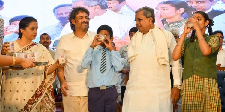 ಬೆಂಗಳೂರು, ಫೆ.22 www.bengaluruwire.com : ರಾಜ್ಯದ 55 ಲಕ್ಷ ಸರ್ಕಾರಿ ಮತ್ತು ಅನುದಾನಿತ ಶಾಲಾ ಮಕ್ಕಳಿಗೆ ಕ್ಷೀರಭಾಗ್ಯ ಯೋಜನೆಯಡಿ ಅವರ ಆರೋಗ್ಯಕ್ಕೆ ಅನುಕೂಲವಾಗುವ ಬಹುಪೌಷ್ಠಿಕಾಂಶವುಳ್ಳ ಸಾಯಿ ಶ್ಯೂರ್ ರಾಗಿ ಮಾಲ್ಟ್ ನೀಡುವ ಕಾರ್ಯಕ್ರಮಕ್ಕೆ ಮುಖ್ಯಮಂತ್ರಿ ಸಿದ್ದರಾಮಯ್ಯ ಇಂದು ಚಾಲನೆ ನೀಡಿದ್ದಾರೆ.