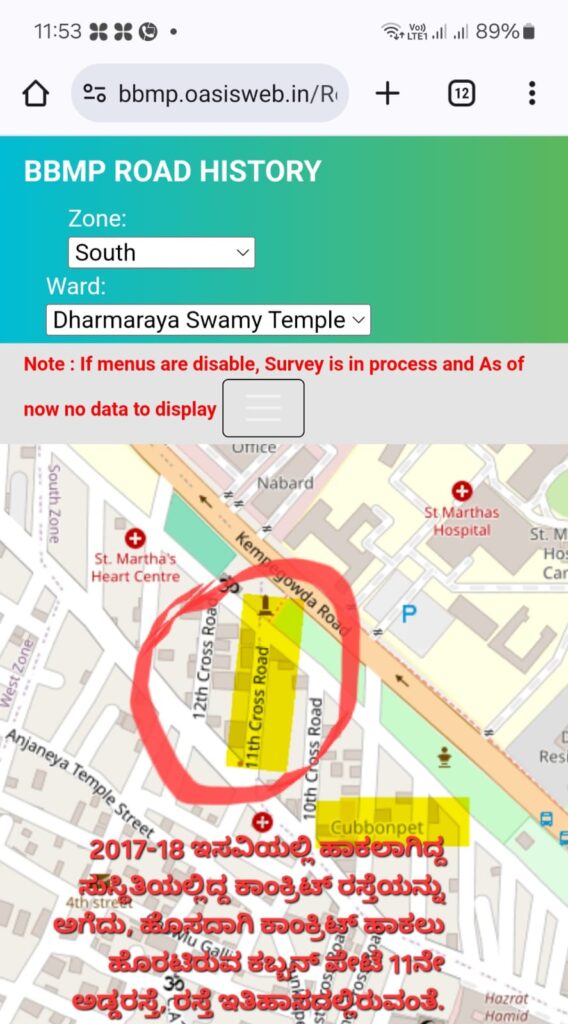2017-18ನೇ ಸಾಲಿನಲ್ಲಿ ಕಾಂಕ್ರಿಟ್ ರಸ್ತೆ ಹಾಕಲಾಗಿದೆ ಎಂದು ಮಾಜಿ ಶಾಸಕ ಆರ್.ವಿ.ದೇವರಾಜ್ ಹೇಳುತ್ತಿದ್ದರೆ, ವಾರ್ಡ್ ಎಂಜಿನಿಯರ್ ಸತ್ಯ ಈ ರಸ್ತೆಗೆ 15 ವರ್ಷದ ಹಿಂದೆ ಕಾಂಕ್ರಿಟ್ ಹಾಕಲಾಗಿತ್ತು ಅಂತಿದ್ದಾರೆ. ಇಬ್ಬರ ವಾದ ಏನೇ ಇರಲಿ ಸುಸ್ಥಿತಿಯಲ್ಲಿರುವ ಕಾಂಕ್ರಿಟ್ ರಸ್ತೆ ಅಗೆದಿದ್ದಾರೂ ಯಾಕೆ?