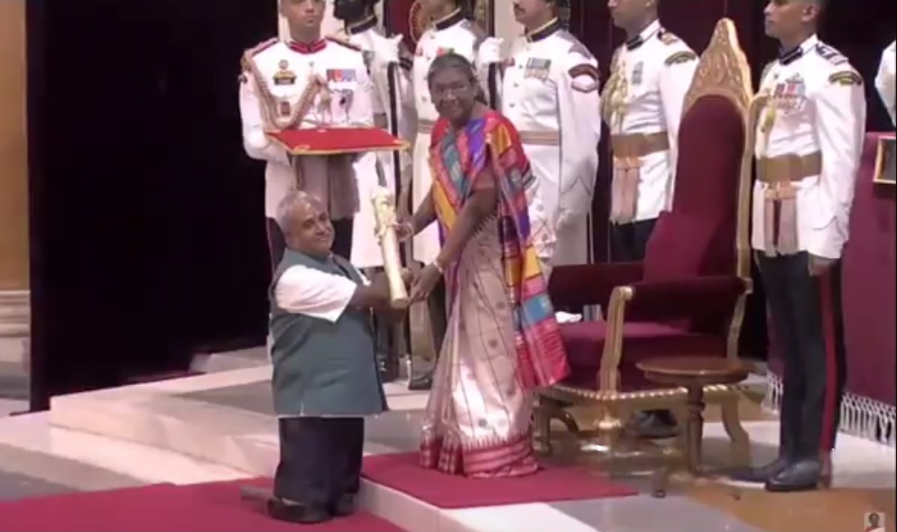 ನವದೆಹಲಿ, ಮೇ.11 www.bengaluruwire.com : ಮಹಾಮಾರಿ ಪೋಲಿಯೋದಿಂದ ತನ್ನ ಎರಡೂ ಕೈಕಾಲುಗಳನ್ನು ಬಾಲ್ಯದಲ್ಲೇ ಕಳೆದುಕೊಂಡಿರುವ ಕರ್ನಾಟಕದ ಸಮಾಜ ಸೇವಕ ಕೆಎಸ್ ರಾಜಣ್ಣ (KS Rajanna) ಅವರಿಗೆ ಇತ್ತೀಚೆಗೆ ರಾಷ್ಟ್ರಪತಿ ದ್ರೌಪದಿ ಮುರ್ಮು ಅವರು ಪದ್ಮಶ್ರೀ ಪ್ರಶಸ್ತಿ (Padmashree Awardee) ನೀಡಿ ಗೌರವಿಸಿದರು.