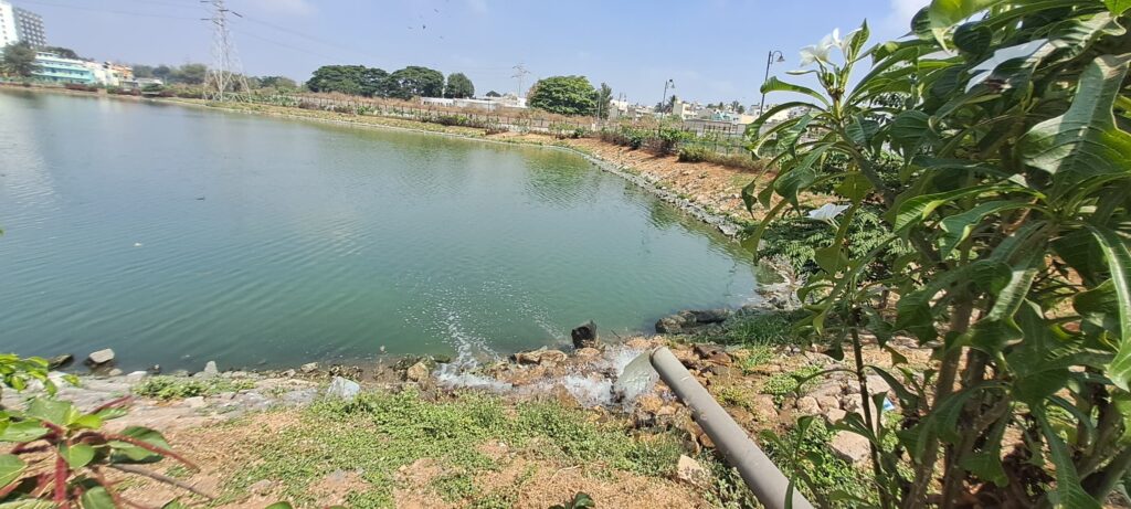 ಸಂಸ್ಕರಿಸಿದ ನೀರನ್ನು ಕೆರೆಗೆ ಹರಿಸಿ, ಅಂತರ್ಜಲ ಹೆಚ್ಚಿಸುವ ಕಾರ್ಯ ಆರಂಭಾಗಿರುವ ಚಿತ್ರ.