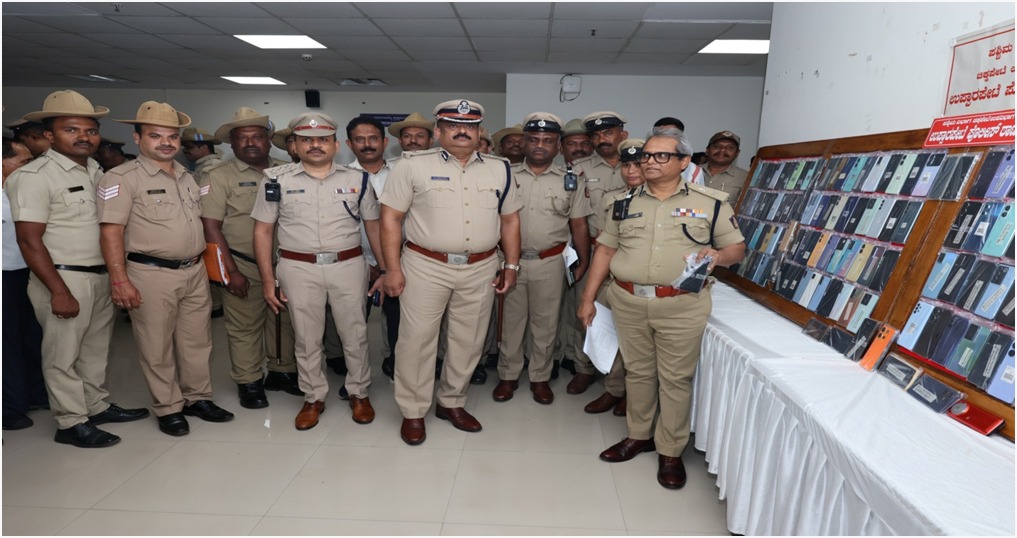 ಉಪ್ಪಾರಪೇಟೆ ಪೊಲೀಸ್ ಠಾಣೆ ವ್ಯಾಪ್ತಿಯಲ್ಲಿ ಪ್ರಕರಣವೊಂದನ್ನು ಭೇದಿಸಿದಾಗ 176 ಮೊಬೈಲ್ ಕಳ್ಳತನ ಪ್ರಕರಣಗಳು ಬೆಳಕಿಗೆ ಬಂದಿದ್ದು, ಪೊಲೀಸರು ವಶಪಡಿಸಿಕೊಂಡ ಮೊಬೈಲ್ ಗಳನ್ನು ಪ್ರದರ್ಶನದಲ್ಲಿಟ್ಟಿದ್ದಾರೆ. ನಗರ ಪೊಲೀಸ್ ಆಯುಕ್ತ ದಯಾನಂದ್ ಅದನ್ನು ಪರಿಶೀಲಿಸಿ ಪೊಲೀಸ್ ಅಧಿಕಾರಿಗಳೊಂದಿಗೆ ಸಮಾಲೋಚಿಸುತ್ತಿರುವ ಚಿತ್ರ.
