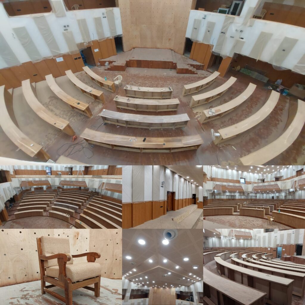 320ರ ಜನರು ಕುಳಿತುಕೊಳ್ಳಲು ಸಾಗುವನಿ ಮರದ ಕುರ್ಚಿಗಳು ಸಿದ್ಧವಾಗಿದೆ. ಸಾಗುವಾನಿ ಮರದ ಮೇಜಿನ ಕೆಲಸ ಮುಗಿದಿದ್ದು, ಸಂಪೂರ್ಣ ಸಭಾಂಗಣವನ್ನು ಸ್ವಚ್ಛಗೊಳಿಸಿ ನಂತರ ಪಾಲಿಷಿಂಗ್ ಕೆಲಸ ಮಾಡಿ, ಸಿದ್ಧವಾಗಿರುವ ಸಾಗುವಾನಿ ಕುರ್ಚಿಗಳನ್ನು ನಟ್ ಆಗಿ ಶಾಶ್ವತವಾಗಿ ಮೇಜಿನ ಹಿಂಭಾಗ ಅಳವಡಿಸುವ ಕೆಲಸಗಳು ಸೇರಿದಂತೆ ಸಣ್ಣಪುಟ್ಟ ಕೆಲಸಗಳು ಬಾಕಿ ಉಳಿದಿದೆ ಜುಲೈ ತಿಂಗಳ ಅಂತ್ಯದ ವೇಳೆಗೆ ಸಂಪೂರ್ಣ ಕಾಮಗಾರಿ ಪೂರ್ಣವಾಗಲಿದೆ ಎಂದು ಬಿಬಿಎಂಪಿ ಅಧಿಕಾರಿಗಳು ಬೆಂಗಳೂರು ವೈರ್ ಗೆ ತಿಳಿಸಿದ್ದಾರೆ.