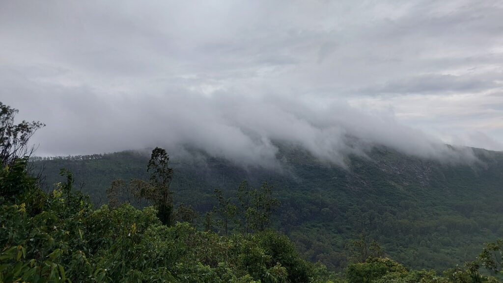 ದೇವನಹಳ್ಳಿ, ಚಿಕ್ಕಬಳ್ಳಾಪುರದ ಕಡೆ ಮಳೆ ತುಂತುರು ಮಳೆ ಹನಿ ಸುರಿಯುತ್ತಿದ್ದರೆ ಸಮುದ್ರ ಮಟ್ಟದಿಂದ 4851 ಅಡಿ ಮೇಲ್ಭಾಗದಲ್ಲಿ 90 ಎಕರೆ ಪ್ರದೇಶವಿರುವ ನಂದಿಬೆಟ್ಟದಲ್ಲಿ ಸುಯ್ಯನೆ ಬೀಸುವ ಗಾಳಿಯ ಪರಿಗೆ ಹಿಮ- ಮಂಜಿನ ನಡುವೆ ನೀಲಗಿರಿ ಮತ್ತಿತರ ಮರಗಳು ಬಾಗುತ್ತಾ, ಬಳಕುತ್ತಿರುವುದನ್ನು, ತೋಟಗಾರಿಕೆ ಇಲಾಖೆ ಉತ್ತಮವಾಗಿ ನಿರ್ವಹಿಸುತ್ತಿರುವ ಉದ್ಯಾನವನವನ್ನು ಅಲ್ಲಿಗೆ ಭೇಟಿ ಕೊಡುವ ಪ್ರವಾಸಿಗರು ನೋಡುತ್ತಾ ಕಣ್ತುಂಬಿಕೊಳ್ಳುತ್ತಿದ್ದಾರೆ.