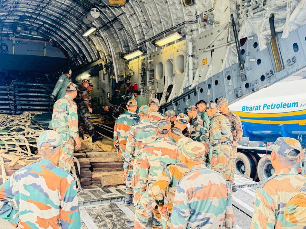 ಭಾರತೀಯ ಸೇನೆಯಿಂದ ತಾತ್ಕಾಲಿಕ ಸೇತುವೆ ನಿರ್ಮಸಿರುವ ಚಿತ್ರ.
