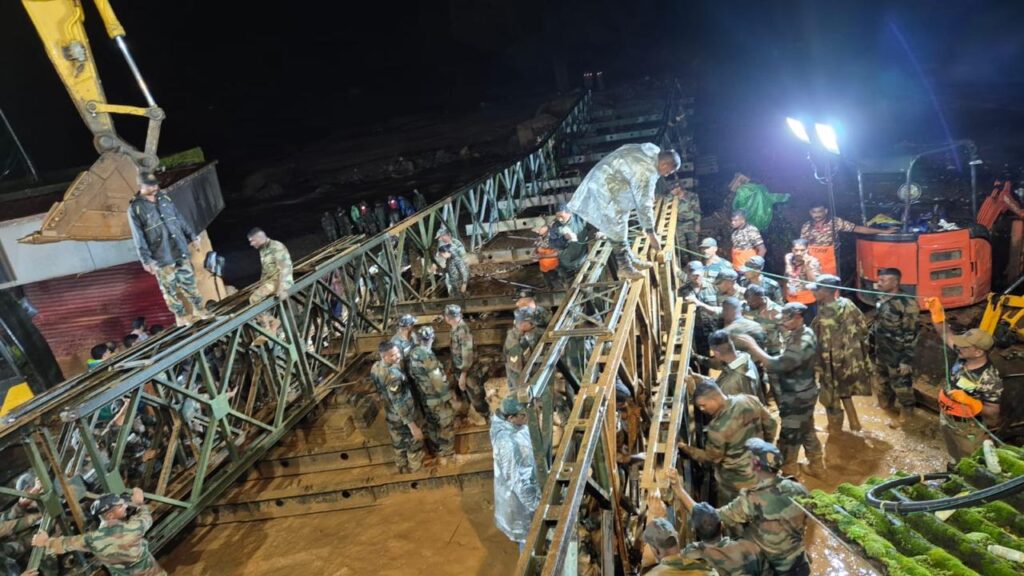 ಬೈಲಿ ಸೇತುವೆಯ ನಿರ್ಮಾಣವನ್ನು ಮದ್ರಾಸ್ ಇಂಜಿನಿಯರ್ಸ್ ಟಾಸ್ಕ್ ಫೋರ್ಸ್ (Madras Engineers Task Force) ನಿಂದ ಮೀಪಾಡಿ-ಚೂರ್ಮಲಾ ಮೇಲೆ ರಾತ್ರಿಯಿಡೀ ಮಾಡಲಾಯಿತು. ಸೇತುವೆಯ ಪೂರ್ಣಗೊಂಡ ನಂತರ, ಸಂಪರ್ಕ ಕಡಿತಗೊಂಡ ಪ್ರದೇಶಗಳಿಗೆ, ಹೆಚ್ಚಿನ ಇಂಜಿನಿಯರಿಂಗ್ ಉಪಕರಣಗಳನ್ನು ರಕ್ಷಣಾ ಕಾರ್ಯ ಕೈಗೊಳ್ಳುವ ಸಲುವಾಗಿ ಕೊಂಡೊಯ್ಯಲಾಗುತ್ತಿದೆ. ನದಿಯ ದಡದ ಮೂಲಕ ಅವಶೇಷಗಳ ಅಡಿ ಅಗೆದು ರಿಮೋಟ್ ಸೆನ್ಸಿಂಗ್ ತಾಂತ್ರಿಕ ಉಪಕರಣಗಳ ಮೂಲಕ ಅನ್ವೇಷಿಸಿ, ಒಳಗೆ ಸಿಲುಕಿರುವವರನ್ನು ರಕ್ಷಿಸುವ ಕೆಲಸ ಮುಂದುವರೆದಿದೆ.
