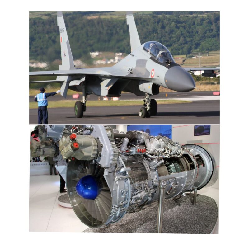 ಸುಖೋಯ್-30ಎಂಕೆಐ ವಿಮಾನ ಹಾಗೂ ಅದರ ಎಎಲ್-31ಎಫ್ ಪಿ ವರ್ಗದ ಏರೋ ಎಂಜಿನ್ ಚಿತ್ರ. (ಚಿತ್ರಕೃಪೆ : ವಿಕಿಪೀಡಿಯಾ)