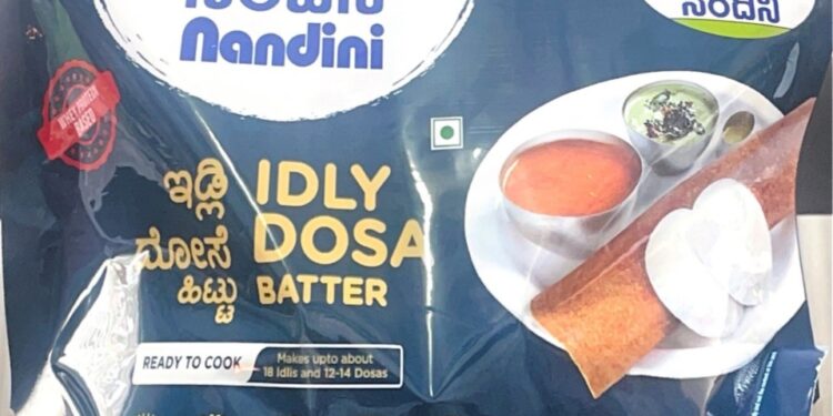 ನಂದಿನಿ ಬ್ರಾಂಡ್ ಅಡಿಯಲ್ಲಿ ಇಡ್ಲಿ ಮತ್ತು ದೋಸೆ ಹಿಟ್ಟನ್ನು ಬೆಂಗಳೂರಿನಲ್ಲಿ ಪರಿಚಯಿಸಲು ಸಜ್ಜಾಗಿದೆ. ಇದೇ ಸೋಮವಾರ ಮುಖ್ಯಮಂತ್ರಿ ಸಿದ್ದರಾಮಯ್ಯನವರು ಹೊಸ ಉತ್ಪನ್ನಕ್ಕೆ ಚಾಲನೆ ನೀಡಲಿದ್ದಾರೆ. ಇದಾದ ಎಂಟತ್ತು ದಿನಗಳಲ್ಲಿ ನಂದಿನಿ ಔಟ್ ಲೆಟ್, ವಿವಿಧ ಪ್ರಮುಖ ಅಂಗಡಿಗಳಲ್ಲಿ ಬೆಂಗಳೂರು ಮಾರುಕಟ್ಟೆಯಲ್ಲಿ ನಂದಿನಿ ಇಡ್ಲಿ ಹಾಗೂ ದೋಸೆ ಹಿಟ್ಟು ಸಿಗಲಿದೆ.