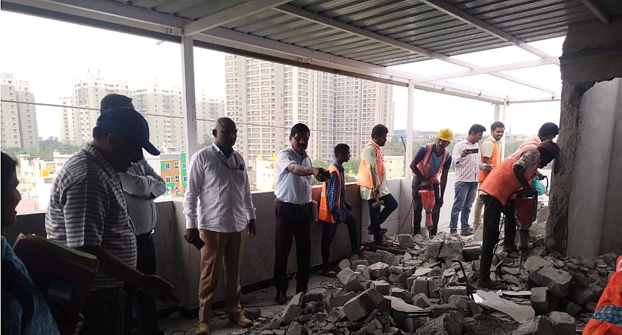 ಈ ಹಿನ್ನಲೆಯಲ್ಲಿ ಕಟ್ಟಡದ ಮಾಲೀಕರಿಗೆ ನೋಟೀಸ್ ಜಾರಿ ಮಾಡಿದ್ದರೂ ಸಹ ಅನಧಿಕೃತ ಕಟ್ಟಡವನ್ನು ತೆರವುಗೊಳಿಸುವ ಬಗ್ಗೆ ಪಾಲಿಕೆಗೆ ಯಾವುದೇ ಮಾಹಿತಿ ಸಲ್ಲಿಸಿರಲಿಲ್ಲ. ಆದ್ದರಿಂದ ಇಂದು ಅಧಿಕಾರಿಗಳ ಜೊತೆ ಸ್ಥಳ ಪರಿಶೀಲನೆ ನಡೆಸಿ 6ನೇ ಮಹಡಿಯಲ್ಲಿ ನಿರ್ಮಿಸಿರುವಂತಹ ಎ.ಸಿ.ಸಿ ಶೀಟ್ ಪೆಂಟ್ ಹೌಸ್, ಪ್ಯಾರಪೆಟ್ ವಾಲ್ ಅನ್ನು ಯಂತ್ರೋಪಕರಣ ಗಳು ಹಾಗೂ ಸುಮಾರು 20 ಸಿಬ್ಬಂದಿ ಮೂಲಕ ತೆರವು ಕಾರ್ಯಾಚರಣೆ ಕೈಗೊಳ್ಳಲಾಯಿತು ಎಂದು ಬಿಬಿಎಂಪಿ ಪತ್ರಿಕಾ ಪ್ರಕಟಣೆಯಲ್ಲಿ ತಿಳಿಸಿದೆ.
