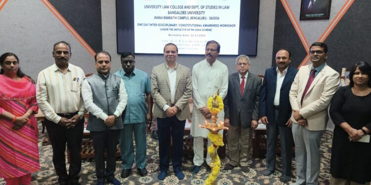 ಕಾರ್ಯಾಗಾರ ಉದ್ಘಾಟಿಸಿ ಮಾತನಾಡಿದ ಬೆಂಗಳೂರು ವಿಶ್ವವಿದ್ಯಾಲಯದ ಕುಲಪತಿ ಡಾ.ಎಂ.ಎಸ್.ಜಯಕರ್, ಪ್ರತಿ ಭಾರತೀಯ ಆರಾಧಿಸಬೇಕಾದ ಗ್ರಂಥ ಸಂವಿಧಾನ. ಸಂವಿಧಾನದ ಆಶಯ ಮತ್ತು ಮೌಲ್ಯಗಳನ್ನು ಪ್ರತಿಯೊಬ್ಬರು ಅಳವಡಿಸಿಕೊಳ್ಳಬೇಕು ಎಂದು ತಿಳಿಸಿದರು.