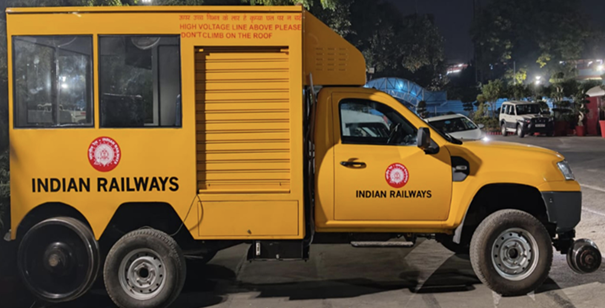 ಭಾರತೀಯ ರೈಲ್ವೆಯ ರಸ್ತೆ ಮತ್ತು ರೈಲು ತಪಾಸಣೆ ವಾಹನದ ಚಿತ್ರ.