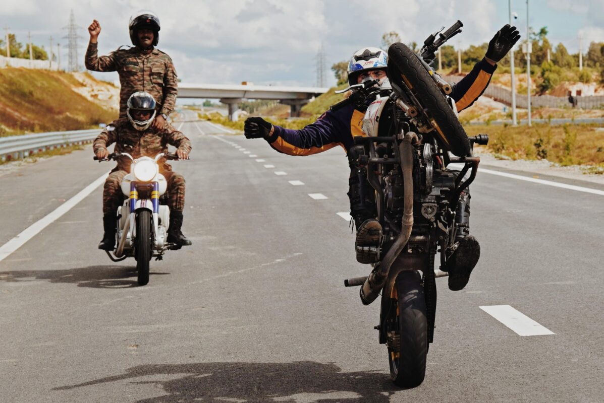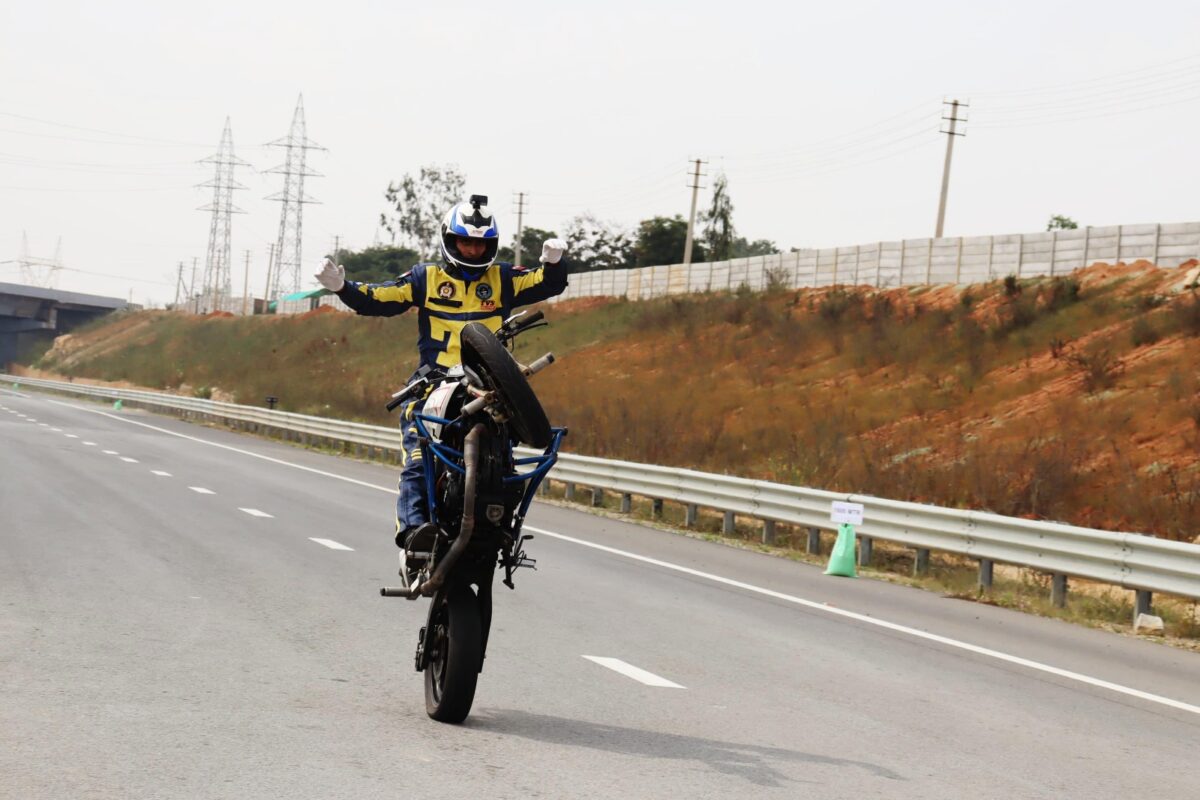 ಇನ್ನು ಹವಾಲ್ದಾರ್ ಮನೀಶ್ ಅವರು ಮೋಟಾರ್ ಸೈಕಲ್ ಹ್ಯಾಂಡಲ್ ಮುಟ್ಟದೆ, ಕೈ ಅಗಲಿಸಿಕೊಂಡು ಮುಂಭಾಗದ ಚಕ್ರ ಮೇಲೆತ್ತಿ 2.349 ಕಿಲೋಮೀಟರ್ ಚಲಿಸಿ ಬೇಸಿಕ್ ಹ್ಯಾಂಡ್ಸ್-ಫ್ರೀ ವೀಲಿಂಗ್ (Basic hands-free wheelie) ಮಾಡಿ ಹೊಸ ದಾಖಲೆಯನ್ನು ಸ್ಥಾಪಿಸಿದರು.