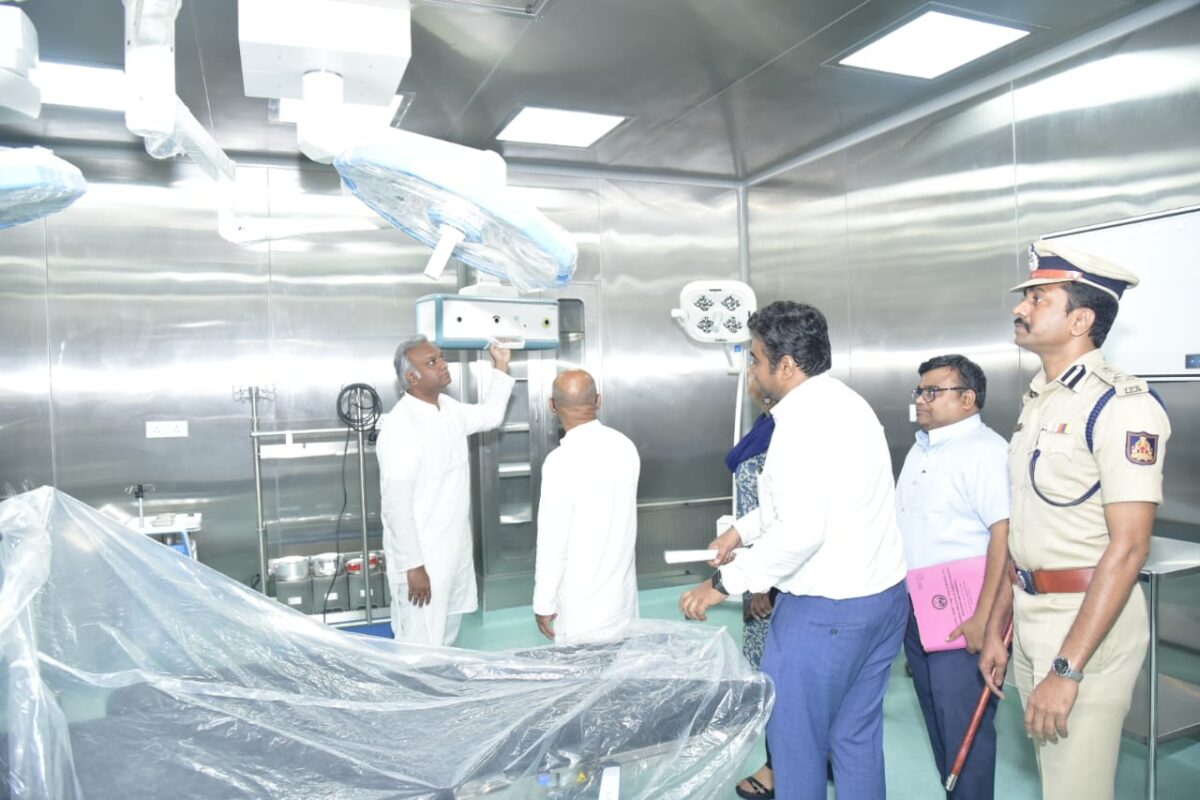 ನೂತನ ಆಸ್ಪತ್ರೆ ಶಸ್ತ್ರಚಿಕಿತ್ಸಾ ಕೊಠಡಿಯನ್ನು ಪರಿಶೀಲಿಸುತ್ತಿರುವ ವೈದ್ಯಕೀಯ ಶಿಕ್ಷಣ ಸಚಿವ ಡಾ.ಶರಣ್ ಪ್ರಕಾಶ್ ಪಾಟೀಲ್