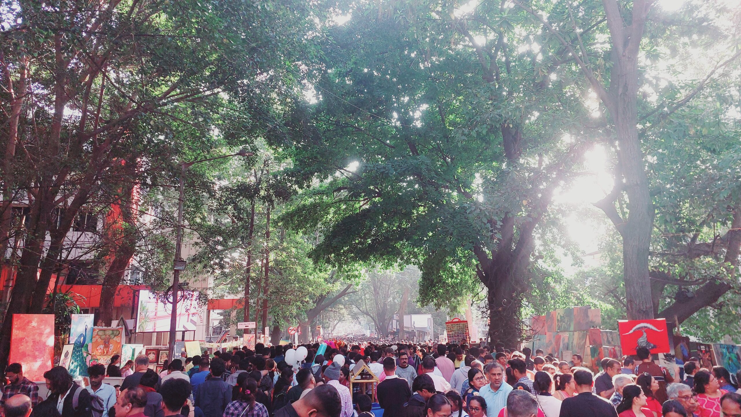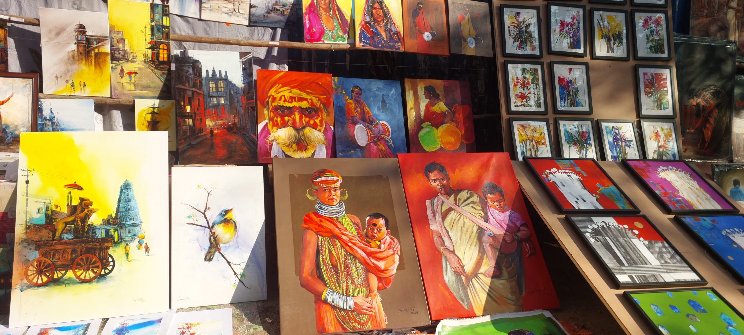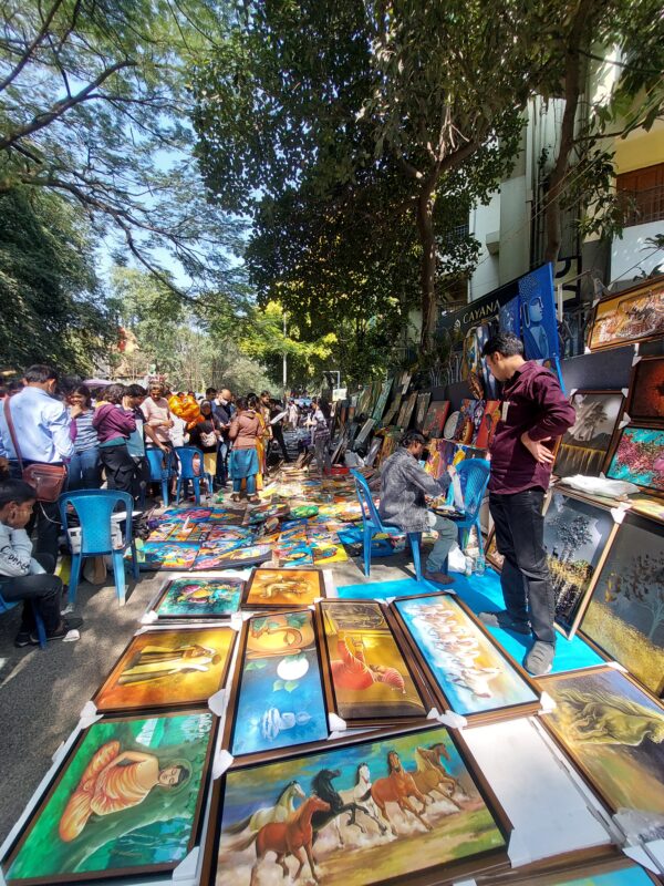 ಬೆಂಗಳೂರಿನ ಕುಮಾರಕೃಪಾ ರಸ್ತೆಯ ತುಂಬಾ ವರ್ಣಮಯ ಚಿತ್ರಗಳದ್ದೇ ಕಾರುಬಾರು. ಒಂದಾ ಎರಡಾ…? ವೈವಿಧ್ಯಮಯ ತೈಲವರ್ಣ, ಚಾರ್ಕೋಲ್, ವಾಟರ್ ಪೈಂಟ್, ಕಾಫಿ ಪೈಟಿಂಗ್, ಗಾಜಿನ ಬಳೆ ಕಲೆ, ಉಬ್ಬುಚಿತ್ರ ಹೀಗೆ ವಿವಿಧ ಮಾಧ್ಯಮಗಳ ಚಿತ್ರಕಲೆಗಳು ಕಲಾವಿದರ ಕೈಯಲ್ಲಿ ಅರಳಿ ನಿಂತಿತ್ತು. ಈ ಚಿತ್ರಸಂತೆಯ ಝಲಕ್ ಇಲ್ಲಿದೆ.