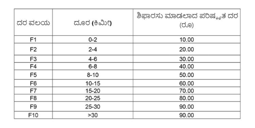 ಪರಿಷ್ಕೃತ ದರ ಈ ಕೆಳಕಂಡಂತಿದೆ :