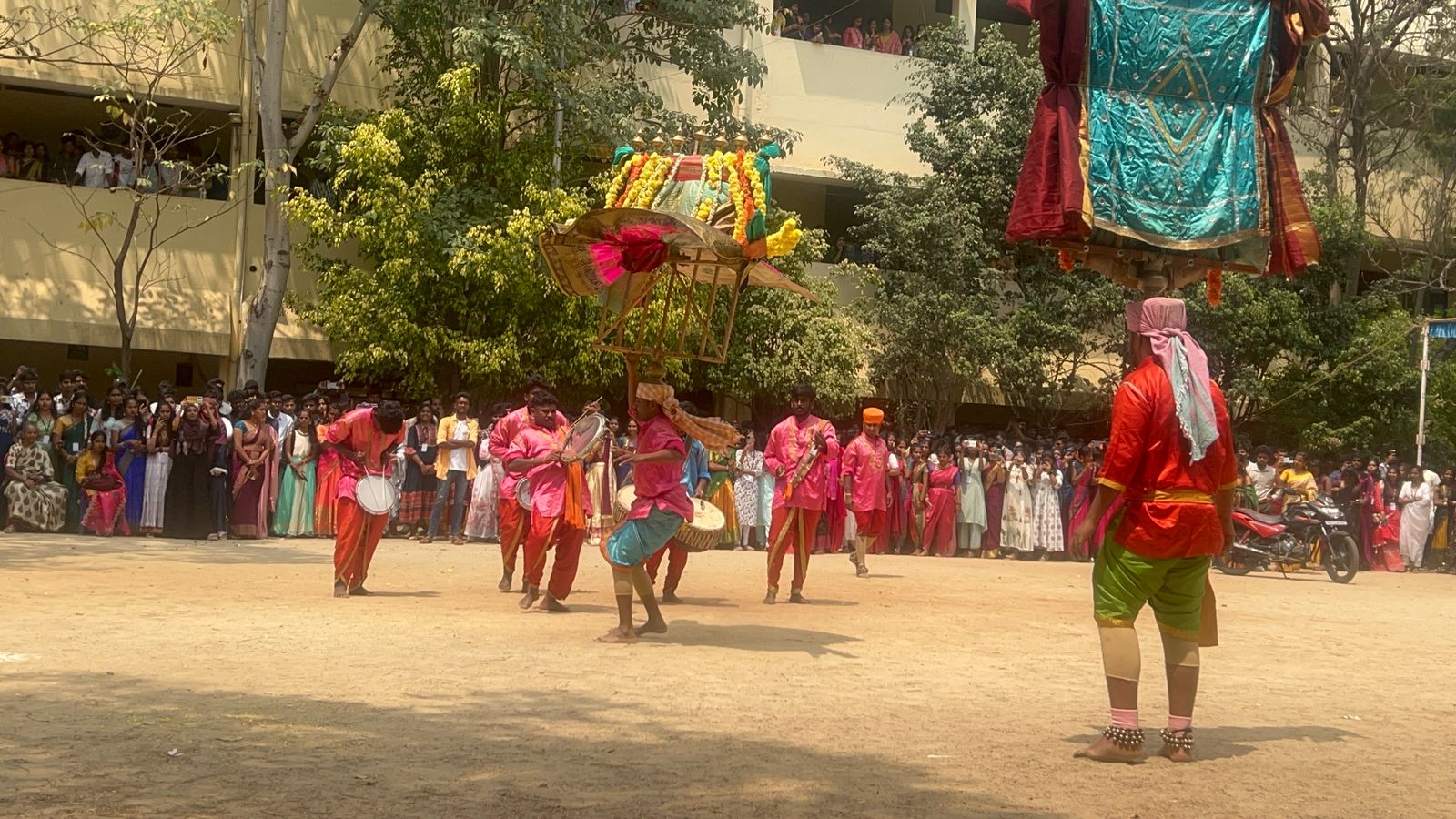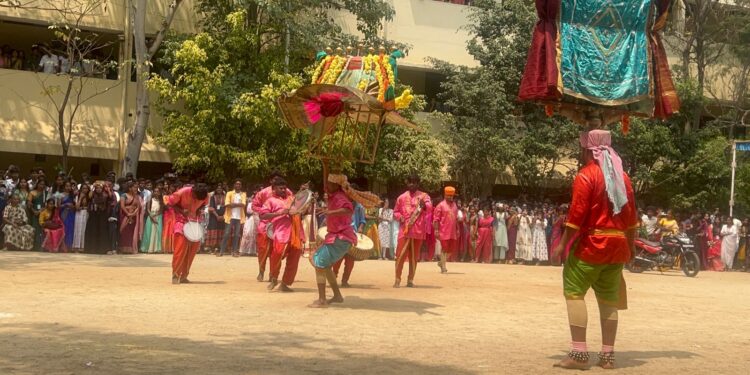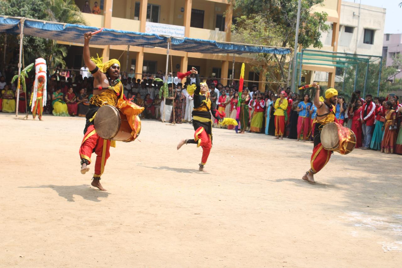 ವಿದ್ಯಾರ್ಥಿಗಳು ಡೊಳ್ಳುಕುಣಿತ, ಪೂಜಾ ಕುಣಿತ, ಜನಪದ ಕಲೆ ಪ್ರಕಾರದ ನೃತ್ಯ, ಹಾಡುಗಳನ್ನು ಹಾಡಿ ಕುಣಿದರು. ಕಾರ್ಯಕ್ರಮದಲ್ಲಿ ಕಾಲೇಜಿನ ಪ್ರಾಂಶುಪಾಲರಾದ ಡಾ. ಶುಭ, ಕರ್ನಾಟಕ ಜಾನಪದ ಅಕಾಡೆಮಿ ಸದಸ್ಯರಾದ ಡಾ. ಜೀವನಸಾಬ್ ವಾಲಿಕಾರ್ ನಾಡೋಜ ಡಾ. ಕಮಲಾ ಹಂಪನಾ ಕನ್ನಡ ಸಂಘಟದ ಸಂಚಾಲಕರಾದ ಡಾ. ದೇವಿಕ ಎಸ್., ಇತಿಹಾಸ ವಿಭಾಗದ ಮುಖ್ಯಸ್ಥರಾದ ಡಾ. ಸ್ಮೀತಾ ಭಾವಿಕಟ್ಟೆ, ವಾಣಿಜ್ಯಶಾಸ್ತ್ರ ವಿಭಾಗದ ಮುಖ್ಯಸ್ಥರಾದ ಮಂಜುಳ, ಕಾಲೇಜಿನ ಹಿರಿಯ ವಿದ್ಯಾರ್ಥಿಗಳ ಸಂಘದ ಅಧ್ಯಕ್ಷರಾದ ವಿಶ್ವನಾಥ ಸೇರಿದಂತೆ ಇತರರು ಉಪಸ್ಥಿತರಿದ್ದರು.