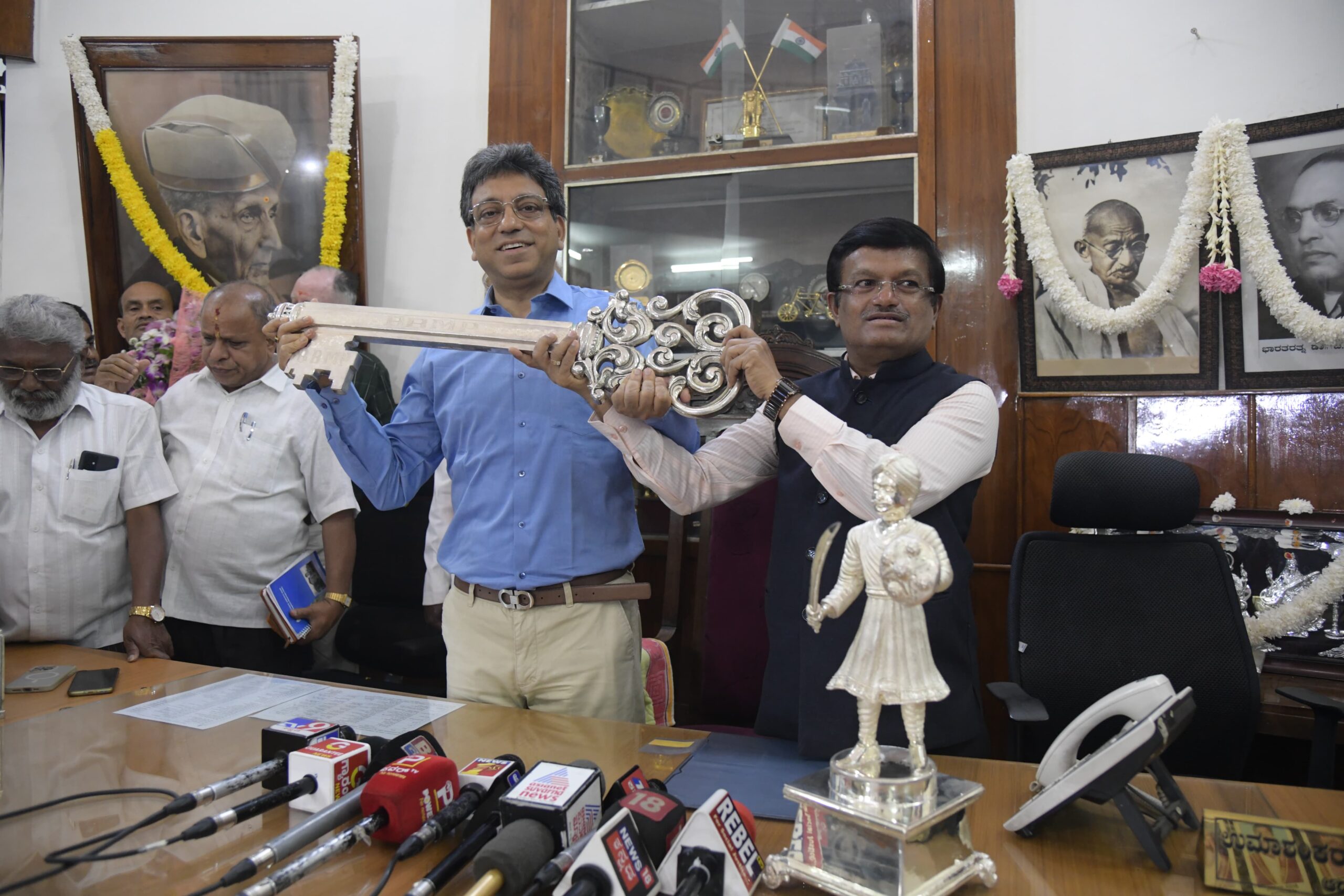 ಇನ್ನು ಪ್ರಸ್ತುತ ಮುಖ್ಯ ಆಯುಕ್ತರಾಗಿದ್ದ ತುಷಾರ್ ಗಿರಿನಾಥ್ ಇದಕ್ಕೂ ಮೊದಲು, ತಮ್ಮ ಹುದ್ದೆಯಿಂದ ಆಡಳಿತಗಾರರಾಗಿ ನೇಮಕವಾದ ಹಿನ್ನಲೆಯಲ್ಲಿ ಹಿರಿಯ ಐಎಎಸ್ ಅಧಿಕಾರಿ ಮಹೇಶ್ವರ್ ರಾವ್ ಅವರಿಗೆ ಬೆಳ್ಳಿಯ ಅಧಿಕಾರ ದಂಡವನ್ನು ಹಸ್ತಾಂತರಿಸಿ ಸಾಂಕೇತಿಕವಾಗಿ ಅಧಿಕಾರ ಹಸ್ತಾಂತರಿಸಿದರು.