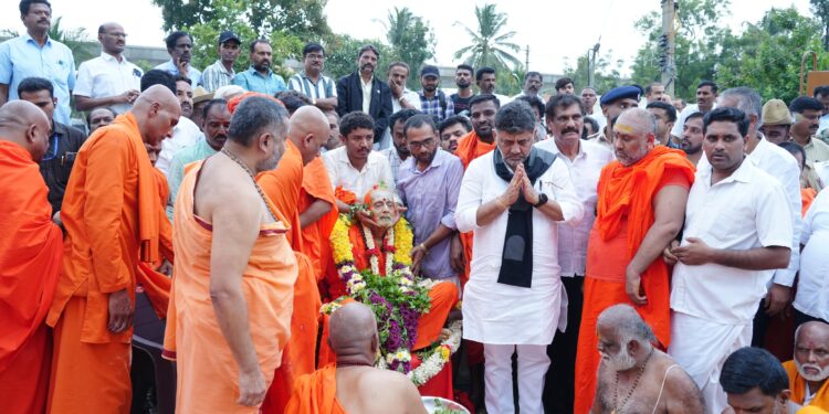 ಬೆಂಗಳೂರು, ಆ.16 www.bengaluruwire.com : ಕೆಂಗೇರಿಯಲ್ಲಿರುವ ವಿಶ್ವ ಒಕ್ಕಲಿಗರ ಮಹಾಸಂಸ್ಥಾನ ಮಠದ ಹಿಂದಿನ ಪೀಠಾಧ್ಯಕ್ಷರಾದ ಶ್ರೀ ಚಂದ್ರಶೇಖರನಾಥ ಸ್ವಾಮೀಜಿ ಅವರ ಅಂತಿಮ ಸಂಸ್ಕಾರವು ಶನಿವಾರ ಪೂರ್ಣ ಧಾರ್ಮಿಕ ವಿಧಿವಿಧಾನಗಳೊಂದಿಗೆ ನಡೆಯಿತು. ಉಪ ಮುಖ್ಯಮಂತ್ರಿ ಡಿ.ಕೆ. ಶಿವಕುಮಾರ್ ಅವರು ಅಂತಿಮ ವಿಧಿಗಳಲ್ಲಿ ಪಾಲ್ಗೊಂಡು ಶ್ರೀಗಳ ಪಾರ್ಥಿವ ಶರೀರಕ್ಕೆ ನಮನ ಸಲ್ಲಿಸಿದರು.