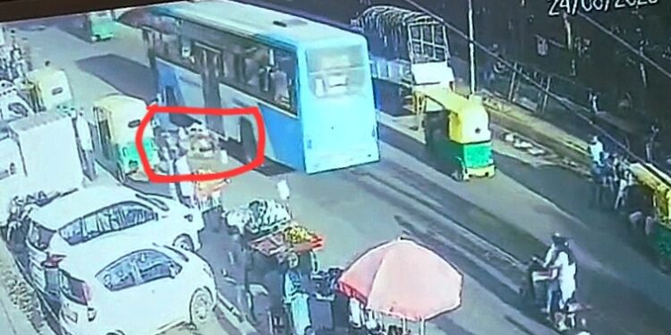 ಸಿಸಿಟಿವಿಯಲ್ಲಿ ದಾಖಲಾಯಿತು ಅಪಘಾತದ ದೃಶ್ಯಾವಳಿ | ದ್ವಿಚಕ್ರ ವಾಹನದಲ್ಲಿ ಮೂವರು ಸವಾರಿ - ಎಡಬದಿಯಿಂದ ಬಸ್ ಓವರ್ ಟೇಕ್