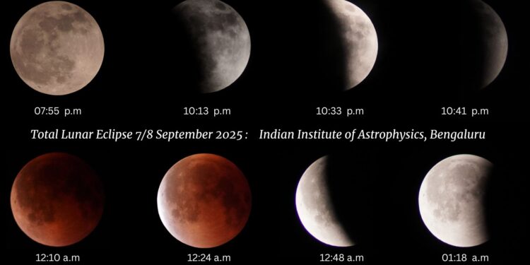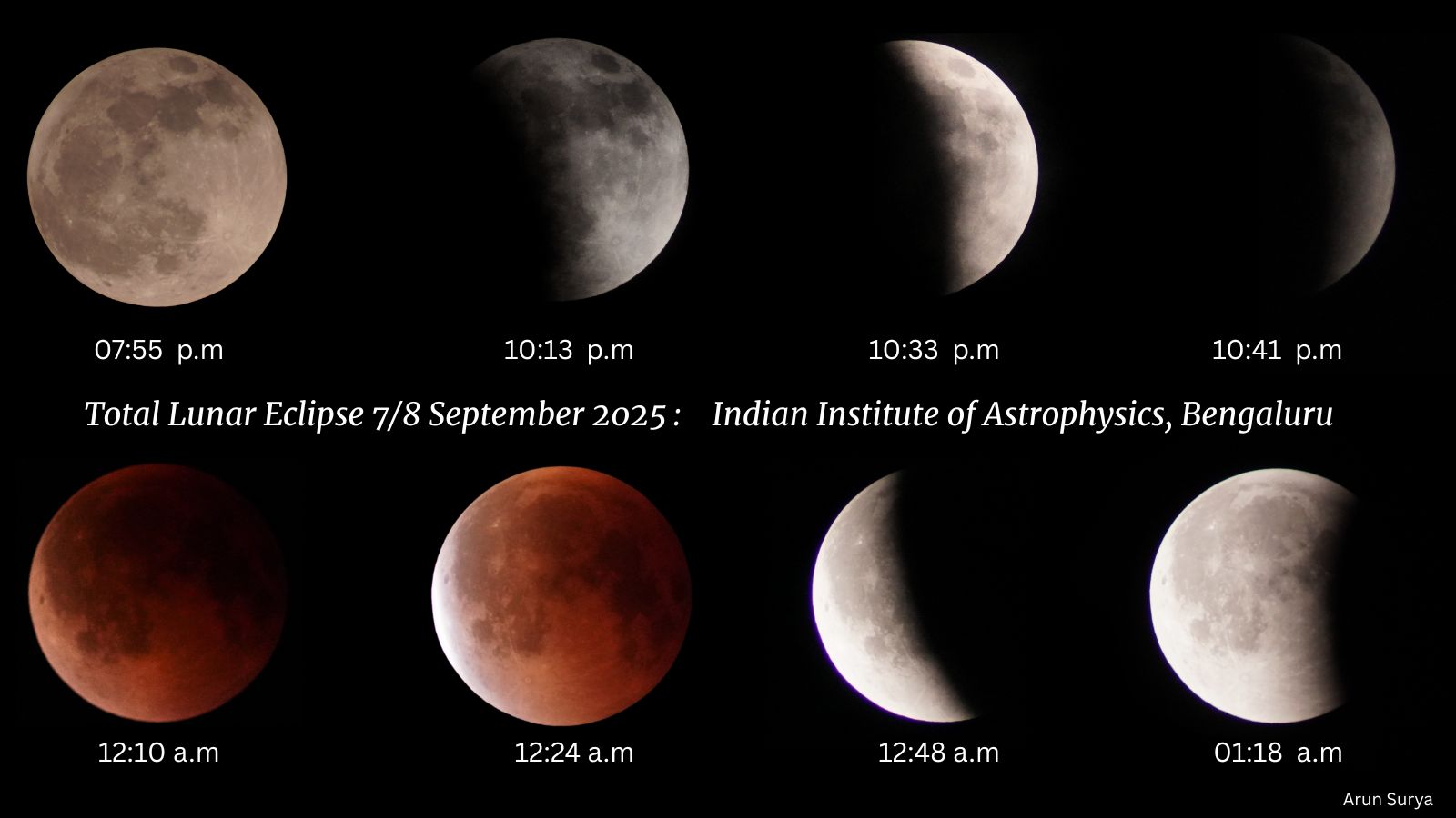 ಬೆಂಗಳೂರು, ಸೆ.08 www.bengaluruwire.com : ನಗರದ ಪ್ರತಿಷ್ಠಿತ ಭಾರತೀಯ ಖಗೋಳ ಭೌತಶಾಸ್ತ್ರ ಸಂಸ್ಥೆ (IIA) ಯಿಂದ ಸೆಪ್ಟೆಂಬರ್ 7 ಮತ್ತು 8ರಂದು ಸಂಭವಿಸಿದ ಸಂಪೂರ್ಣ ಚಂದ್ರಗ್ರಹಣದ ವೈಜ್ಞಾನಿಕ ಅವಲೋಕನದೊಂದಿಗೆ ಆಕರ್ಷಕ ಛಾಯಾಚಿತ್ರಗಳನ್ನು ತೆಗೆದು ದಾಖಲಿಸಲಾಗಿದೆ.