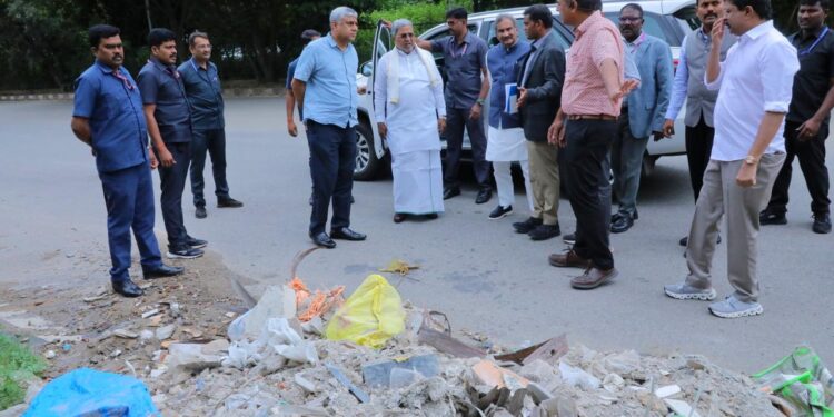 ಬೆಂಗಳೂರು, ಸೆ.27 www.bengaluruwire.com : ನಗರದಲ್ಲಿ ಸುರಿದ ಭಾರಿ ಮಳೆಯ ನಂತರ ರಸ್ತೆಗಳಲ್ಲಿ ಸೃಷ್ಟಿಯಾಗಿರುವ ಸಹಸ್ರಾರು ಗುಂಡಿಗಳು ಮತ್ತು ಕಳಪೆ ತ್ಯಾಜ್ಯ ನಿರ್ವಹಣೆಯ ವಿರುದ್ಧ ಸಾರ್ವಜನಿಕರ ಆಕ್ರೋಶ ತಾರಕಕ್ಕೇರಿದ್ದ ಹಿನ್ನೆಲೆಯಲ್ಲಿ ಮುಖ್ಯಮಂತ್ರಿ ಸಿದ್ದರಾಮಯ್ಯನವರು ಇಂದು (ದಿನಾಂಕ) ಸಿಟಿ ರೌಂಡ್ಸ್ ನಡೆಸಿ, ನಗರದ ಅವ್ಯವಸ್ಥೆಗಳನ್ನು ಖುದ್ದು ಪರಿಶೀಲಿಸಿದರು.