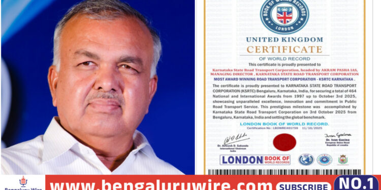 ಕೆಎಸ್‌ಆರ್‌ಟಿಸಿ 1997ರಿಂದ ಇಲ್ಲಿಯವರೆಗೆ 464 ರಾಷ್ಟ್ರೀಯ ಹಾಗೂ ಅಂತರರಾಷ್ಟ್ರೀಯ ಪ್ರಶಸ್ತಿಗಳನ್ನು ಸ್ವೀಕರಿಸಿದೆ. ಲಂಡನ್ ಬುಕ್ ಆಫ್ ರೆಕಾರ್ಡ್ ಒಂದು ಖಾಸಗಿ ಸಂಸ್ಥೆಯಾಗಿದ್ದು, ಇದು ಈ ಹಿಂದೆ ಮಹಾರಾಷ್ಟ್ರದ ಮಾಜಿ ಸಿಎಂ ಏಕನಾಥ್ ಶಿಂಧೆ, ಪುದುಚೇರಿ ಸರ್ಕಾರ ಸೇರಿದಂತೆ ಹಲವು ಸಾಧಕರನ್ನು ಗುರುತಿಸಿ ಗೌರವಿಸಿದೆ.