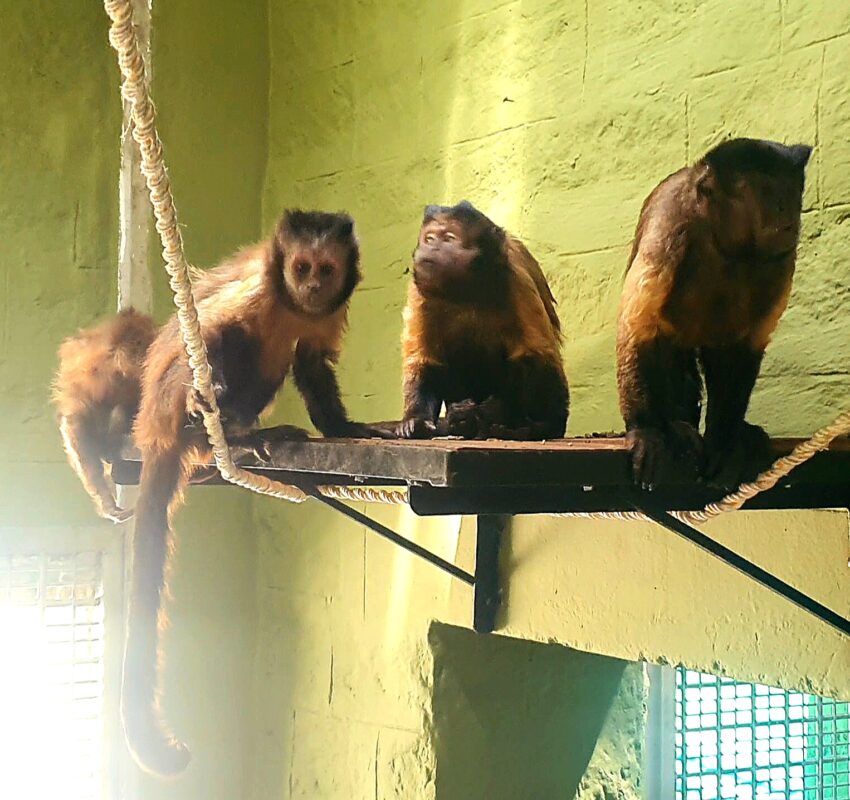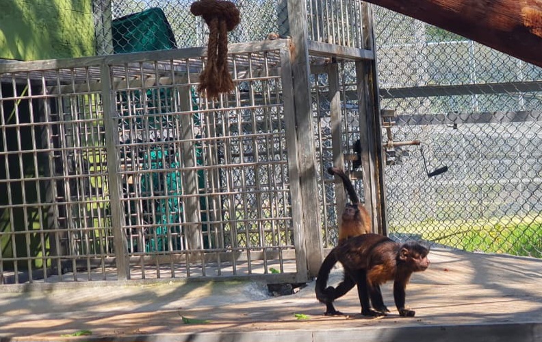 ಪಂಜರದಲ್ಲಿದೆ ಅಪರೂಪದ ‘ಬ್ಲ್ಯಾಕ್ ಕ್ಯಾಪ್ಡ್ ಕ್ಯಾಪುಚಿನ್’ ಕೋತಿ.