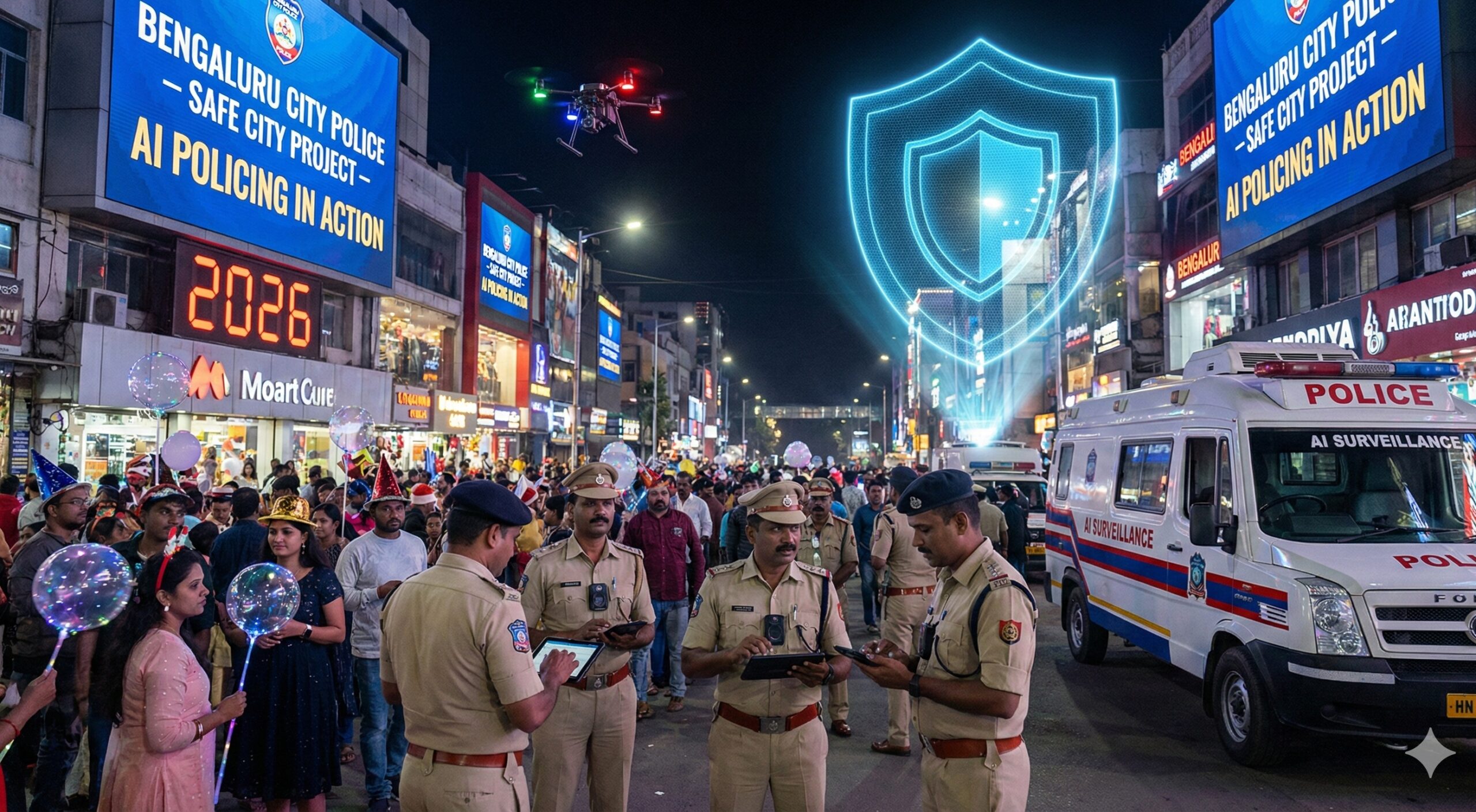 ಶಾಂತಿಯುತ ಮತ್ತು ಸಂತೋಷದಾಯಕ ಹೊಸ ವರ್ಷಾಚರಣೆಗೆ ಸಹಕರಿಸಿದ ಬೆಂಗಳೂರಿನ ಜನತೆಗೆ ನಗರ ಪೊಲೀಸ್ ಇಲಾಖೆ ಧನ್ಯವಾದ ಅರ್ಪಿಸಿದ್ದು, ಎಐ ತಂತ್ರಜ್ಞಾನದ ಮೂಲಕ ಬೆಂಗಳೂರನ್ನು ‘ಸ್ಮಾರ್ಟ್ ಮತ್ತು ಸೇಫ್ ಸಿಟಿ’ಯನ್ನಾಗಿ ಮಾಡಲು ಬದ್ಧರಾಗಿರುವುದಾಗಿ ತಿಳಿಸಿದೆ. (Main Image Credit : Gemini AI)