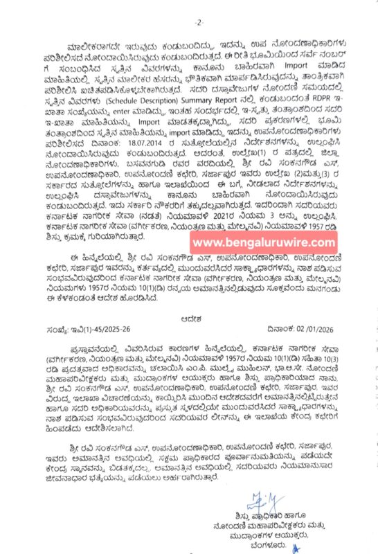 * ರವಿ ಸಂಕನಗೌಡ ಎಸ್. (ಉಪನೋಂದಣಾಧಿಕಾರಿ, ಸರ್ಜಾಪುರ): ಇನ್ಫೋಸಿಸ್ ಆಸ್ತಿ ಪ್ರಕರಣ ಮತ್ತು ನಕಲಿ ಕೋರ್ಟ್ ಆದೇಶ ಆಯ್ಕೆ ಬಳಕೆ.
