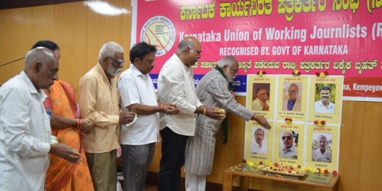 ಬೆಂಗಳೂರು, ಫೆ.06 www.bengaluruwire.com : ರಾಜ್ಯದ ಪತ್ರಿಕೋದ್ಯಮದಲ್ಲಿ ತಮ್ಮದೇ ಆದ ಛಾಪು ಮೂಡಿಸಿ, ಇತ್ತೀಚೆಗೆ ಇಹಲೋಕ ತ್ಯಜಿಸಿದ ಹಿರಿಯ ಪತ್ರಕರ್ತರಿಗೆ ಕರ್ನಾಟಕ ಕಾರ್ಯನಿರತ ಪತ್ರಕರ್ತರ ಸಂಘದ (ಕೆಯುಡಬ್ಲ್ಯೂಜೆ) ವತಿಯಿಂದ ಗುರುವಾರ ನಗರದಲ್ಲಿ ಭಾವಪೂರ್ಣ ಶ್ರದ್ಧಾಂಜಲಿ ಸಲ್ಲಿಸಲಾಯಿತು.
