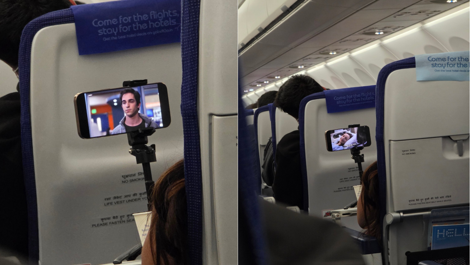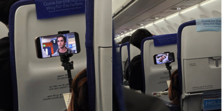 ಸಾಮಾನ್ಯವಾಗಿ ವಿಮಾನ ಪ್ರಯಾಣದ ವೇಳೆ ಇಂಟರ್ನೆಟ್ ಇರುವುದಿಲ್ಲ. ಹೀಗಾಗಿ ಬಹುತೇಕರು ಮೊದಲೇ ಡೌನ್ಲೋಡ್ ಮಾಡಿದ ಸಿನಿಮಾಗಳನ್ನು ಅಥವಾ ವೆಬ್ ಸಿರೀಸ್ಗಳನ್ನು ನೋಡುತ್ತಾ ಕಾಲ ಕಳೆಯುತ್ತಾರೆ. ಆದರೆ, ಗಂಟೆಗಟ್ಟಲೆ ಕೈಯಲ್ಲಿ ಮೊಬೈಲ್ ಹಿಡಿದು ನೋಡುವುದು ಕಷ್ಟದ ಕೆಲಸ. ಕೈ ನೋವು ಬರುವುದು ಸಹಜ. ಆದರೆ, ಈ ಸಮಸ್ಯೆಗೆ ವೈರಲ್ ಆದ ಪೋಸ್ಟ್ ನಲ್ಲಿನ ಪ್ರಯಾಣಿಕನ ಬಳಿ ಪರಿಹಾರವಿದೆ.