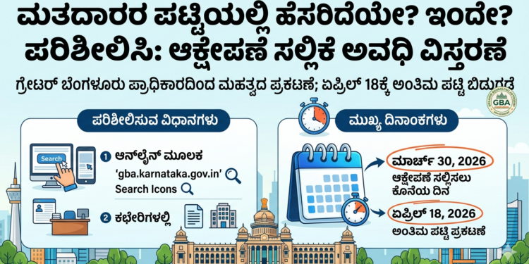 ಆನ್‌ಲೈನ್ ಮೂಲಕ: ಪ್ರಾಧಿಕಾರದ ಅಧಿಕೃತ ವೆಬ್‌ಸೈಟ್ https://gba.karnataka.gov.in/electoral2026 ಗೆ ಭೇಟಿ ನೀಡಿ ‘Search tool by name’ ಅಥವಾ ‘Search by EPIC’ ಆಯ್ಕೆಯನ್ನು ಬಳಸಬಹುದು.