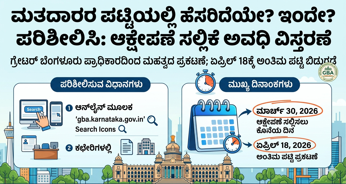 ಗ್ರೇಟರ್ ಬೆಂಗಳೂರು ಪ್ರಾಧಿಕಾರದ ವ್ಯಾಪ್ತಿಯ ಐದು ನಗರ ಪಾಲಿಕೆಗಳ ಮುಂಬರುವ ಸಾರ್ವತ್ರಿಕ ಚುನಾವಣೆ-2026ರ ಹಿನ್ನೆಲೆಯಲ್ಲಿ, ವಾರ್ಡ್‌ವಾರು ಪರಿಷ್ಕೃತ ಕರಡು ಮತದಾರರ ಪಟ್ಟಿಯನ್ನು ಈಗಾಗಲೇ ಪ್ರಕಟಿಸಲಾಗಿದೆ.