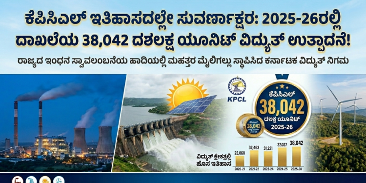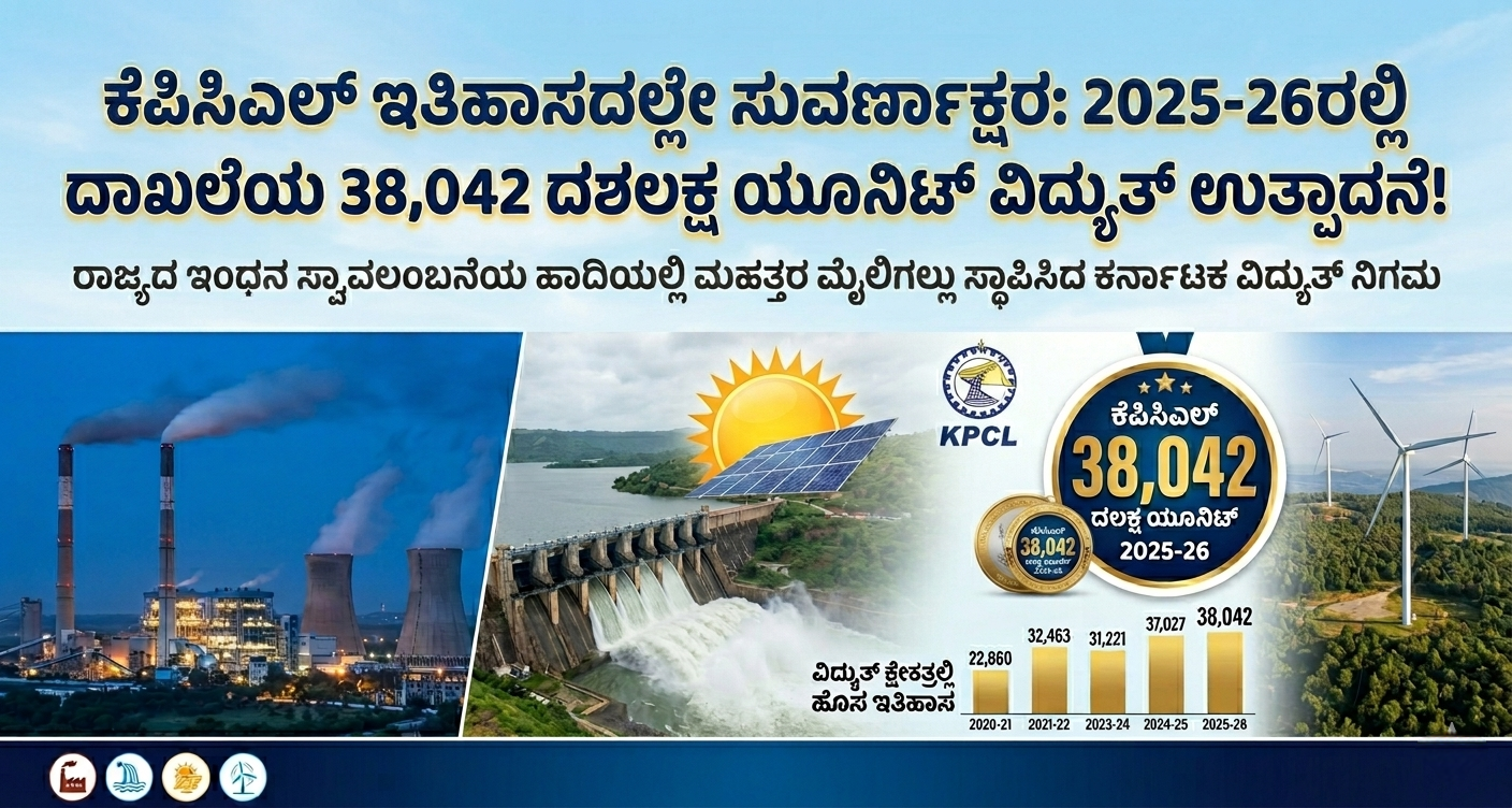 Power News | ಕೆಪಿಸಿಎಲ್ ಇತಿಹಾಸದಲ್ಲೇ ಸುವರ್ಣಾಕ್ಷರ: 2025-26ರಲ್ಲಿ ದಾಖಲೆಯ 38,042 ದಶಲಕ್ಷ ಯೂನಿಟ್ ವಿದ್ಯುತ್ ಉತ್ಪಾದನೆ