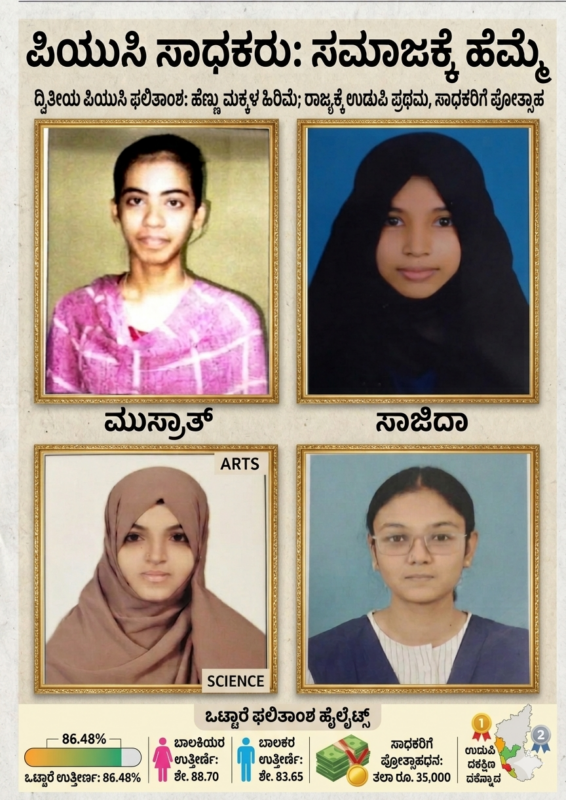 ವೈಯಕ್ತಿಕ ಸಾಧಕರು: ವಾಣಿಜ್ಯ ವಿಭಾಗದಲ್ಲಿ ಕ್ಲೀವ್ ಲ್ಯಾಂಡ್ ಟೌನ್ ಕಾಲೇಜಿನ ಫಿರ್ದೋಸ್ ಮತ್ತು ಶಾಜೀದ್ (582 ಅಂಕ) ಸಾಧನೆ ಮಾಡಿದ್ದಾರೆ. ವಿಜ್ಞಾನದಲ್ಲಿ ಅರ್ಫಿನ್ ಖಾನಂ (578 ಅಂಕ) ಹಾಗೂ ಕಲಾ ವಿಭಾಗದಲ್ಲಿ ಭೈರವೇಶ್ವರನಗರದ ಮುಸ್ರತ್ (574 ಅಂಕ) ಗಮನಾರ್ಹ ಸಾಧನೆ ಮಾಡಿದ್ದಾರೆ.