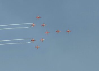 ಬೆಂಗಳೂರು : ಬಿರು ಬಿಸಿಲಿನಲ್ಲಿ ಕೆಂಪು ಬಿಳಿ ಬಣ್ಣದ ಸೂರ್ಯಕಿರಣ ಯುದ್ಧವಿಮಾನ ಆಕಾಶವನ್ನು ಸೀಳಿ ಮುನ್ನುಗ್ಗುತ್ತಿತ್ತು. ಸಾರಂಗ ಹೆಲಿಕಾಪ್ಟರ್ ಗಗನದಲ್ಲಿ ಸಾಗುತ್ತಾ ನವಿಲಿನ ನರ್ತನ ಮಾಡಿತ್ತು. ಯುದ್ಧ...