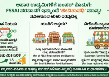 Read moreDetailsನವದೆಹಲಿ, ಮಾ.14 www.bengaluruwire.com: ದೇಶದ ಆಹಾರ ಉದ್ಯಮಿಗಳಿಗೆ ಮತ್ತು ಸಣ್ಣ ವ್ಯಾಪಾರಿಗಳಿಗೆ ಕೇಂದ್ರ ಸರ್ಕಾರ ಸಿಹಿ ಸುದ್ದಿಯೊಂದನ್ನು ನೀಡಿದೆ. ಇನ್ನುಮುಂದೆ ಭಾರತೀಯ ಆಹಾರ ಸುರಕ್ಷತೆ ಮತ್ತು ಗುಣಮಟ್ಟ...